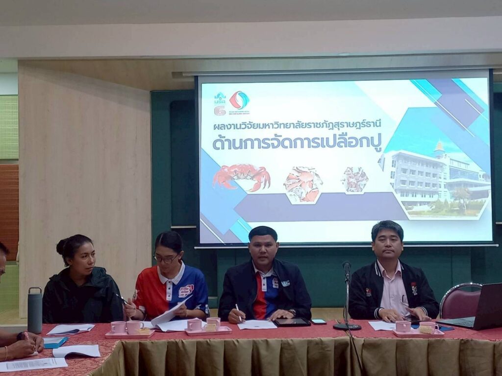 วันที่ 24 ตุลาคม 2568 ผู้ช่วยศาสตราจารย์ ดร.นรา พงษ์พานิช ผู้อำนวยการสถาบันวิจัยและพัฒนา มหาวิทยาลัยราชภัฏสุราษฎร์ธานี พร้อมด้วย ผู้ช่วยศาสตราจารย์ ดร.พงษ์ศักดิ์ นพรัตน์ รองผู้อำนวยการสถาบันวิจัยและพัฒนา อาจารย์นัสวัล บุญวงศ์ ดร.เนตรนภา เรืองภาณุพันธ์ อาจารย์ประจำคณะวิทยาศาสตร์และเทคโนโลยี และนายปองพล ชุมศรี เจ้าหน้าที่บริหารงานทั่วไป คลินิกเทคโนโลยี ร่วมประชุมหารือแนวทางการจัดการขยะอินทรีย์และเศษเปลือก ปูม้าแบบครบวงจร ร่วมกับ นายโกมินทร์ อิ่มเอิบ นายกเทศมนตรีเมืองดอนสัก พร้อมด้วยคณะผู้บริหาร หัวหน้าส่วนราชการ และสมาชิกสภาเทศบาล ณ ห้องประชุม ชั้น 3 สำนักงานเทศบาลเมืองดอนสัก อำเภอดอนสัก จังหวัดสุราษฎร์ธานี และลงพื้นที่เพื่อเก็บข้อมูล