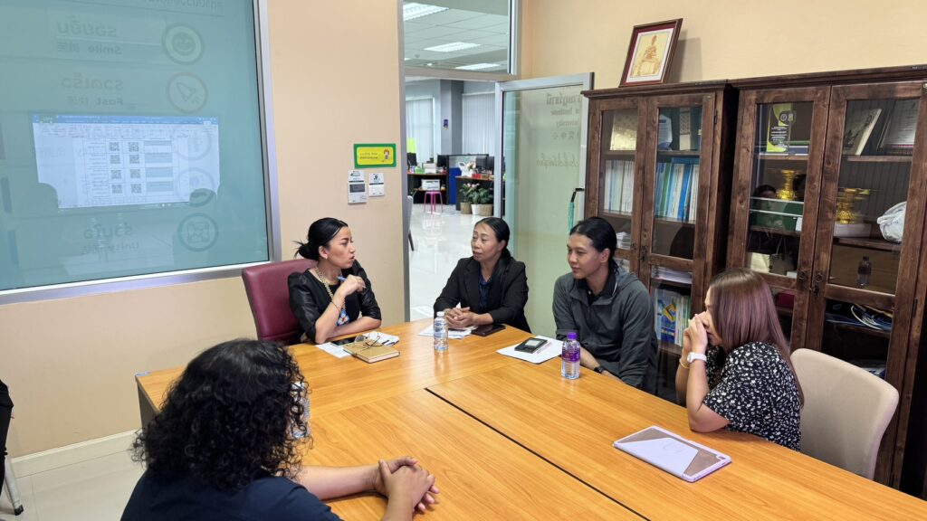 วันที่ 30 ตุลาคม 2568 ผู้ช่วยศาสตราจารย์ ดร.นรา พงษ์พานิช ผู้อำนวยการสถาบันวิจัยและพัฒนา มอบหมายให้ ผู้ช่วยศาสตราจารย์ ดร.ธัญญาภัส ทองมุสิทธิ์ รองผู้อำนวยการสถาบันวิจัยและพัฒนา และนางสาวจุรีภรณ์ เนียมสมบัติ หัวหน้าสำนักงานสถาบันวิจัยและพัฒนา ให้การต้อนรับ คุณไพรรัตน์ คงสร้อย ผู้อำนวยการสำนักจัดการทรัพย์สิน คุณกชพร สุขสวัสดิ์ ผู้จัดการฝ่ายพัฒนาผลิตภัณฑ์ และนายจิรายุทธ ทวิชศรี เจ้าหน้าที่บริหารงานทั่วไป จากสำนักจัดการทรัพย์สิน ที่ได้ลงพื้นที่สัญจร ณ สถาบันวิจัยและพัฒนา เพื่อปรึกษาหารือแนวทางการจัดซื้อจัดหาวัสดุสำนักงานและสินค้าที่ระลึกตราสัญลักษณ์มหาวิทยาลัยตามนโยบายการบริหารจัดการทรัพย์สินของมหาวิทยาลัยราชภัฏสุราษฎร์ธานี
