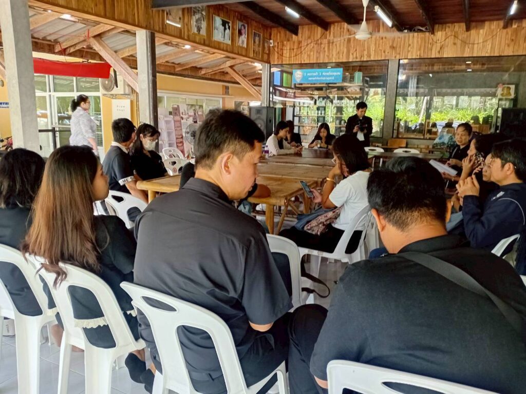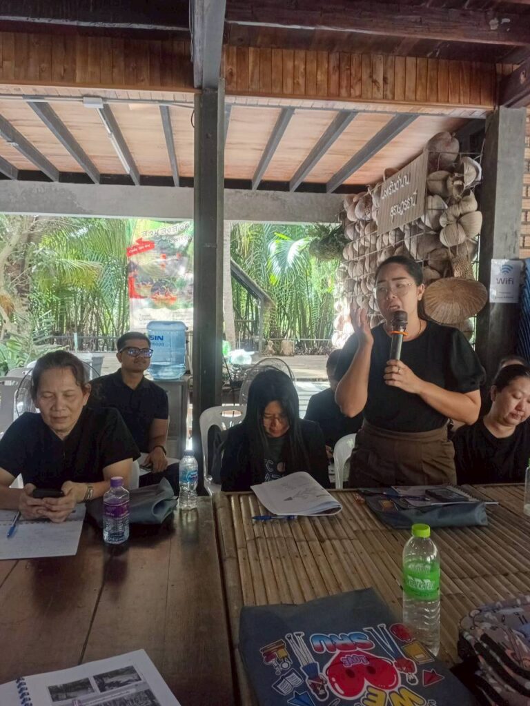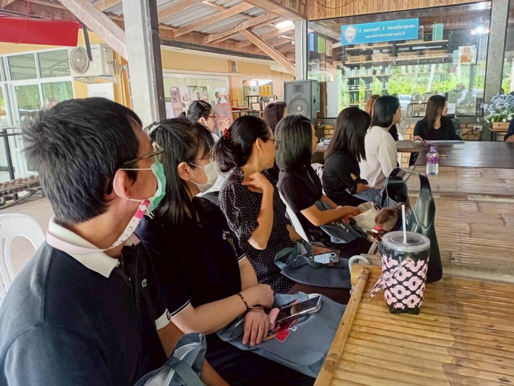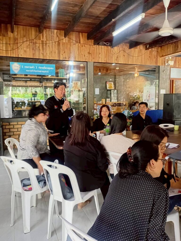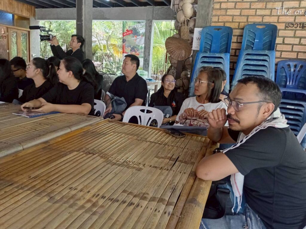 วันที่ 3 พฤศจิกายน 2568 ผู้ช่วยศาสตราจารย์ ดร.นรา พงษ์พานิช ผู้อำนวยการสถาบันวิจัยและพัฒนา มหาวิทยาลัยราชภัฏสุราษฎร์ธานี จัดอบรม เชิงปฏิบัติการ “พัฒนางานวิจัยและบริการวิชาการด้วยกระบวนการวิศวกรสังคม” เพื่อเสริมสร้างศักยภาพคณาจารย์ให้เข้าใจบริบทของพื้นที่และพัฒนางาน วิจัยที่ตอบสนองต่อความต้องการของชุมชนอย่างแท้จริง โดยมี ผู้ช่วยศาสตราจารย์ ดร.ธัญญาภัส ทองมุสิทธิ์ รองผู้อำนวยการสถาบันวิจัยและพัฒนา ผู้ช่วยศาสตราจารย์จีรนันท์ กล่อมนรา แก้วรักษา เป็นวิทยากร และผู้ช่วยศาสตราจารย์ ดร.ฉัตตมาศ วิเศษสินธุ์ ร่วมดำเนินกิจกรรม ทั้งนี้ หนึ่งในพื้นที่ปฏิบัติการ คือ “ศูนย์การเรียนรู้น้ำมันมะพร้าวสกัดเย็น (สวนลุงสงค์)” ซึ่งเป็นแหล่งเรียนรู้ด้านการผลิตน้ำมันมะพร้าวที่ได้รับการรับรองมาตรฐานเกษตรอินทรีย์ (Organic Thailand) จากกรมวิชาการเกษตร และมีผลิตภัณฑ์แปรรูปที่ได้รับการรับรองมาตรฐานต่าง ๆ เช่น GAP, ฮาลาล, OTOP 5 ดาว และคาร์บอนฟุตปริ้นต์ (Carbon Footprint) โดยผลิตภัณฑ์น้ำมันมะพร้าวดังกล่าวได้นำมาต่อยอดด้วยนวัตกรรมเป็นเครื่องสำอางภายใต้แบรนด์ “Prow Thai by สวนลุงสงค์” ซึ่งสืบสานภูมิปัญญาท้องถิ่นที่ใช้น้ำมันมะพร้าวดูแลสุขภาพและความงามจากอดีตถึงปัจจุบัน พร้อมทั้งร่วมแลกเปลี่ยนเรียนรู้กับชุมชนเกี่ยวกับแนวทางพัฒนาผลิตภัณฑ์ให้โดดเด่น ตอบโจทย์ผู้บริโภคยุคใหม่ การขยายช่องทางตลาด และการจัดทำมะพร้าว GI (Geographical Indication) เพื่อยกระดับอัตลักษณ์และมูลค่าของผลิตภัณฑ์ในพื้นที่