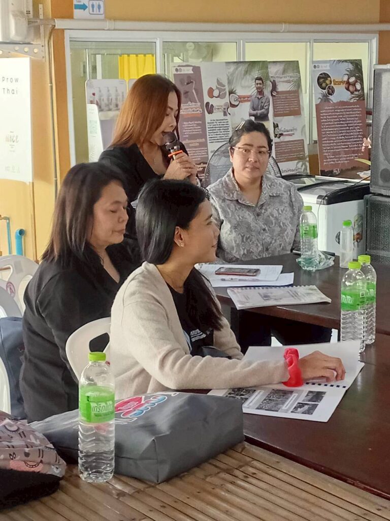 นอกจากนี้ คณะผู้เข้าร่วมกิจกรรมได้ร่วมกันจัดทำไทม์ไลน์กระบวนการแปรรูปน้ำมันมะพร้าวสกัดเย็นเป็นผลิตภัณฑ์สบู่ ซึ่งเป็นผลิตภัณฑ์ใหม่ที่อยู่ระหว่างการพัฒนาให้มีเอกลักษณ์และเพิ่มขีดความสามารถในการแข่งขันของชุมชน โดยใช้กระบวนการ “วิศวกรสังคม” วิเคราะห์จุดแข็ง ปัญหา และโอกาสของพื้นที่ เพื่อนำไปสู่การสร้างโจทย์วิจัยและบริการวิชาการที่สอดคล้องกับบริบทจริง การอบรมในครั้งนี้จึงเป็นเวทีแห่งการเรียนรู้ร่วมกันระหว่างมหาวิทยาลัยและชุมชน ช่วยให้อาจารย์เข้าใจโจทย์ของพื้นที่อย่างลึกซึ้ง และสามารถต่อยอดองค์ความรู้สู่การพัฒนางานวิจัยและบริการวิชาการเพื่อชุมชนได้อย่างมีประสิทธิภาพ ตอบสนองต่อพันธกิจของมหาวิทยาลัยในการ “พัฒนาชุมชนด้วยองค์ความรู้ เพื่อยกระดับคุณภาพชีวิตอย่างยั่งยืน”
