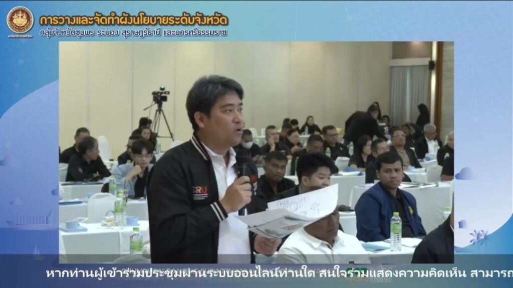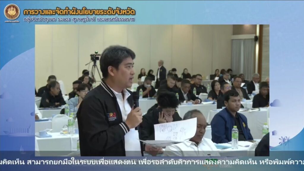 วันที่ 5 พฤศจิกายน 2568 ผู้ช่วยศาสตราจารย์ ดร.วัฒนา รัตนพรหม อธิการบดีมหาวิทยาลัยราชภัฏสุราษฎร์ธานี มอบหมายให้ ผู้ช่วยศาสตราจารย์ ดร.นรา พงษ์พานิช ผู้อำนวยการสถาบันวิจัยและพัฒนา เข้ารวมการประชุมเชิงปฏิบัติการ เพื่อชี้แจงโครงการ รับฟังความคิดเห็น ข้อเสนอแนะการวางและจัดทำผังนโยบายระดับจังหวัด กลุ่มจังหวัดชุมพร ระนอง สุราษฎร์ธานี และนครศรีธรรมราช ครั้งที่ 1 (กลุ่มที่ 1 จังหวัดสุราษฎร์ธานี และจังหวัดนครศรีธรรมราช) จัดโดย กรมโยธาธิการและผังเมือง ณ โรงแรมนิภาการ์เด้น อำเภอเมือง จังหวัดสุราษฎร์ธานี และรูปแบบการประชุมแบบ Hybrid Meeting ผ่านระบบ Webinar