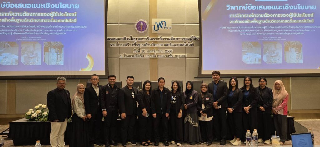 วันที่ 20 พฤศจิกายน 2568 เวลา 10.00 น. ผู้ช่วยศาสตราจารย์ ดร.นรา พงษ์พานิช ผู้อำนวยการสถาบันวิจัยและพัฒนา มอบหมายให้ ผู้ช่วยศาสตราจารย์ ดร.พงษ์ศักดิ์ นพรัตน์ รองผู้อำนวยการสถาบันวิจัยและพัฒนา เข้าประชุมวิพากษ์ข้อเสนอแนะเชิงนโยบายการวิเคราะห์ความต้องการของผู้ใช้ประโยชน์จากโครงสร้างพื้นฐานด้านวิทยาศาสตร์และเทคโนโลยี ณ โรงแรมอัศวิน แกรนด์ คอนเวนชัน กรุงเทพ โดยมีหน่วยบริหารและจัดการทุนด้านการพัฒนากำลังคน และทุนด้านการพัฒนาสถาบันอุดมศึกษา การวิจัยและการสร้างนวัตกรรม (บพค.) ดำเนินโครงการการศึกษาศักยภาพโครงสร้างพื้นฐานเพื่อสนับสนุนการวิจัยและพัฒนาอุตสาหกรรมและบริการในอนาคต โดยมีวัตถุประสงค์เพื่อวิเคราะห์ความต้องการของผู้ใช้ประโยชน์จากโครงสร้างพื้นฐานด้านวิทยาศาสตร์และเทคโนโลยีในการดึงดูดกลุ่มเป้าหมายมาใช้บริการโครงสร้างพื้นฐานภาครัฐเพิ่มขึ้น และเพื่อให้การดำเนินงานบรรลุวัตถุประสงค์ของโครงการ
