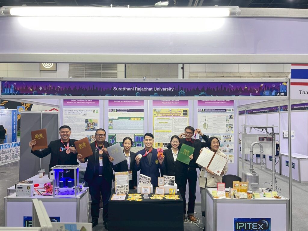 ในโอกาสนี้ นักศึกษาและนักวิจัยมหาวิทยาลัยราชภัฏสุราษฎร์ธานีได้รับรางวัลในมหกรรมสิ่งประดิษฐ์มหกรรมสิ่งประดิษฐ์และนวัตกรรมนานาชาติ 2026 ดังนี้