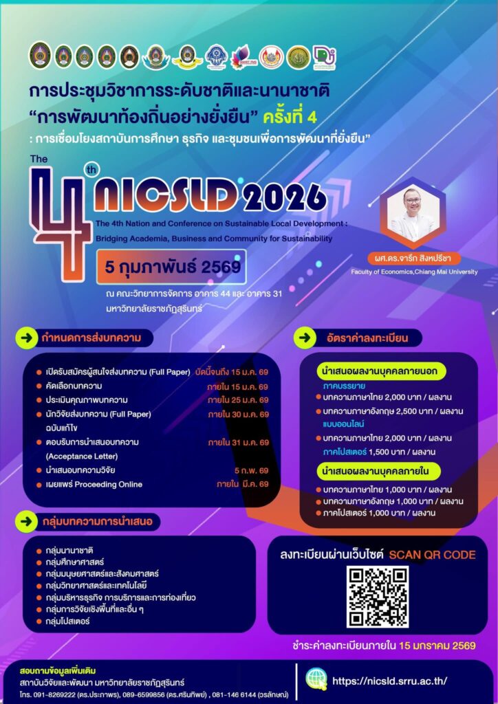การประชุมวิชาการระดับชาติและนานาชาติ ครั้งที่ 4 : Nicsld2026 https://www.facebook.com/profile.php?id=61584068400147…