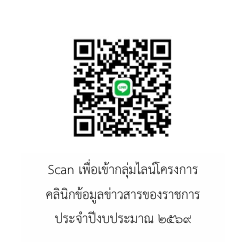 เกี่ยวกับการปฏิบัติตามพระราชบัญญัติข้อมูลข่าวสารของราชการ พ.ศ. ๒๕๔๐ แก่หน่วยงานของรัฐและเจ้าหน้าที่ของรัฐ โดยหน่วยงานที่สนใจสามารถเข้าร่วมโครงการได้ในวันที่ ๒๑ มกราคม ๒๕๖๙ เวลา ๐๙.๐๐ – ๑๒.๐๐ น. ในรูปแบบ online โดยไม่มีค่าใช้จ่ายใด ๆ ทั้งสิ้น และโปรดสแกน QR Code