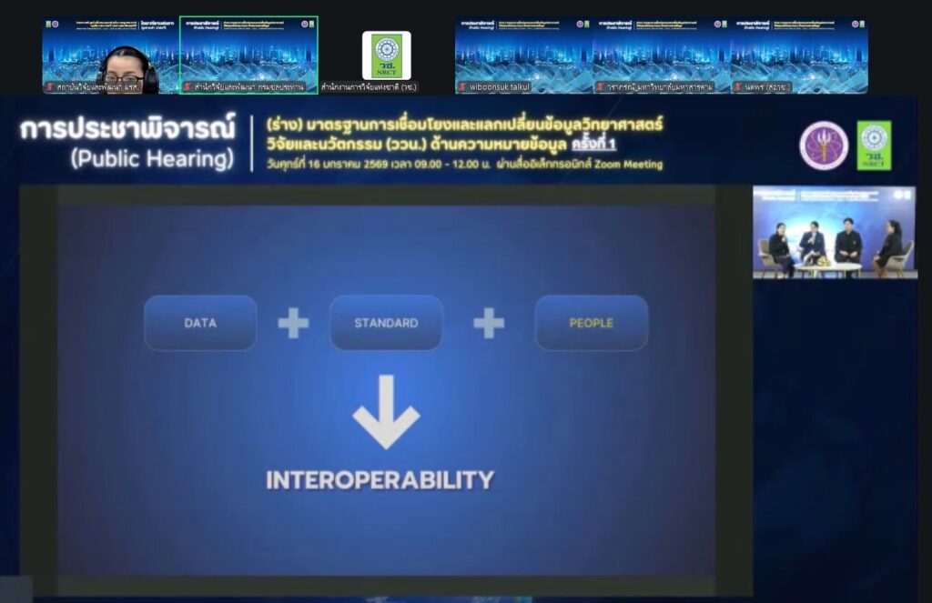 สวพ.ร่วมกิจกรรมการประชาพิจารณ์ (Public Hearing) (ร่าง) มาตรฐานการเชื่อมโยงและแลกเปลี่ยนข้อมูลวิทยาศาสตร์ วิจัยและนวัตกรรม (ววน.) ด้านความหมายข้อมูล ครั้งที่ 1