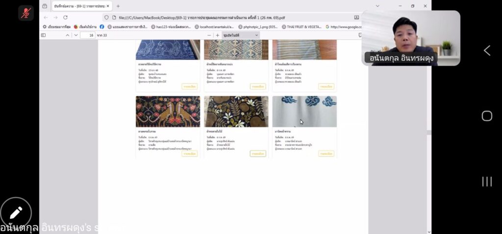 ที่ประชุมได้หารือประเด็นสำคัญ อาทิ การพัฒนาระบบฐานข้อมูลแบบ Open Access ควบคู่กับระบบตลาดออนไลน์ “พี่ช้าง น้องชบา” เพื่อขยายช่องทางการจำหน่ายผลิตภัณฑ์ผ้าทอภูมิปัญญาท้องถิ่น ตลอดจนการเตรียมนำผลงานเข้าร่วมจัดแสดงในงาน “วันนักประดิษฐ์” ณ ศูนย์แสดงสินค้าไบเทค บางนา และงาน “ตามรอยศิลป์ 134” ณ มหาวิทยาลัยราชภัฏพระนคร นอกจากนี้ ยังได้วางแผนการจัดอบรมหลักสูตรจำนวน 3 หลักสูตร ครั้งที่ 3 ระหว่างวันที่ 12–15 มีนาคม 2569 รวมทั้งเตรียมความพร้อมในการส่งมอบผลงานวิจัยร่วมกับสำนักงานพัฒนาชุมชนจังหวัดอุดรธานี เพื่อขับเคลื่อนองค์ความรู้สู่การใช้ประโยชน์เชิงพื้นที่อย่างเป็นรูปธรรมต่อไป